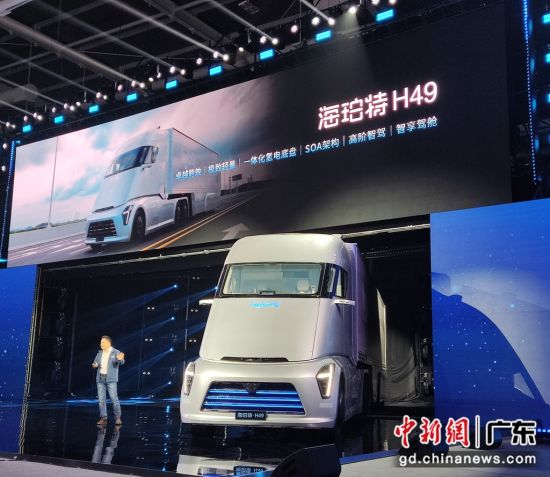 全球首款氢燃料电池干线物流重卡“海珀特H49”12日晚上在广州空港博览中心正式发布。