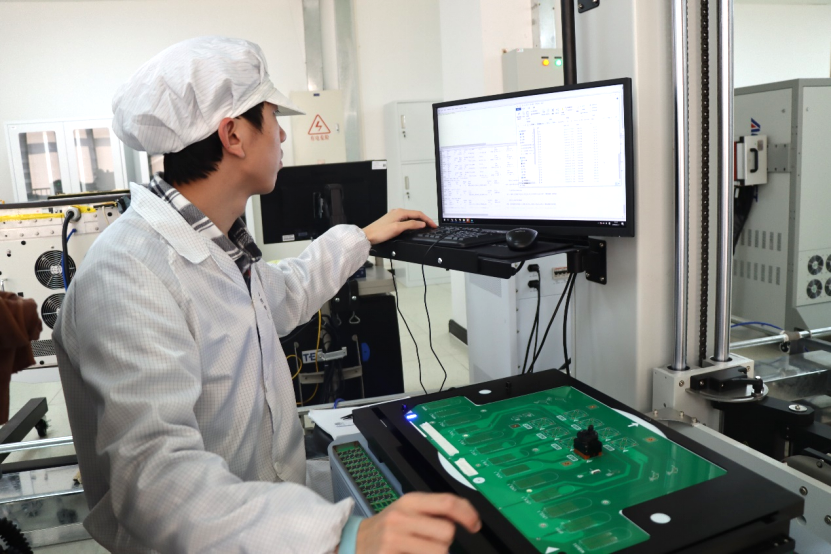 中国赛宝实验室工程师正在进行汽车芯片功能参数测试