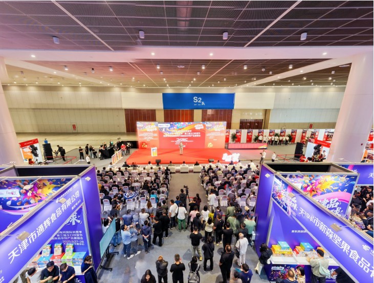 走进展厅,1万平方米的展区内人头攒动、香气四溢。共有140多家企业参展,除天津本土知名的王口炒货品牌集群外,更迎来甘肃镇原县特色农产品企业。高原上的小米、杂粮、苹果、羊肉等特色农产品与津门炒货碰撞出东西协作的消费新火花,打造跨地域产品体验。