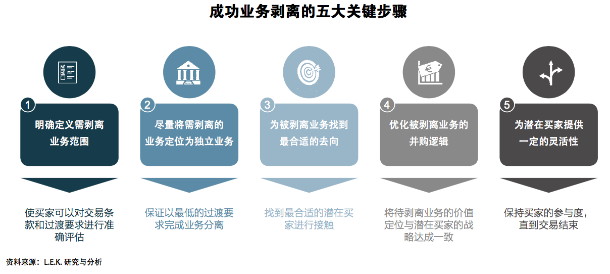 在剥离业务的整个过程中,外部的战略支持能够为计划的执行提供支持,并帮助相关资产做好迎接尽职调查的准备。