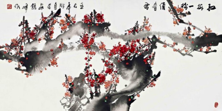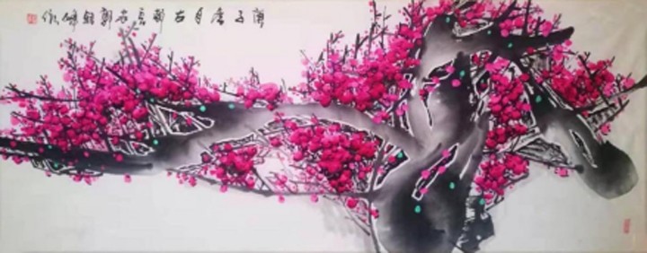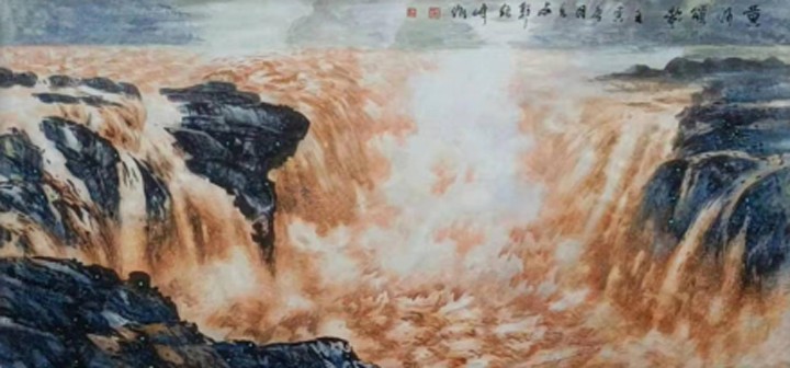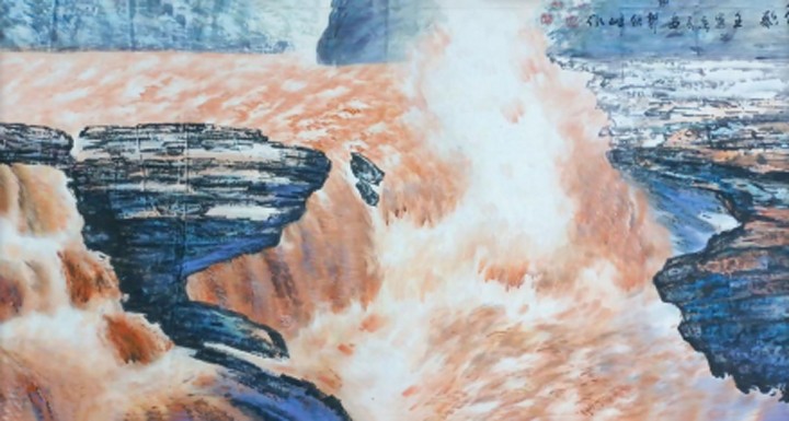 《黄河颂歌》本是国画,他却将西洋画中的构图、色彩、用光技巧及空间融入其中, 增加了作品的韵味,使人回味无穷。