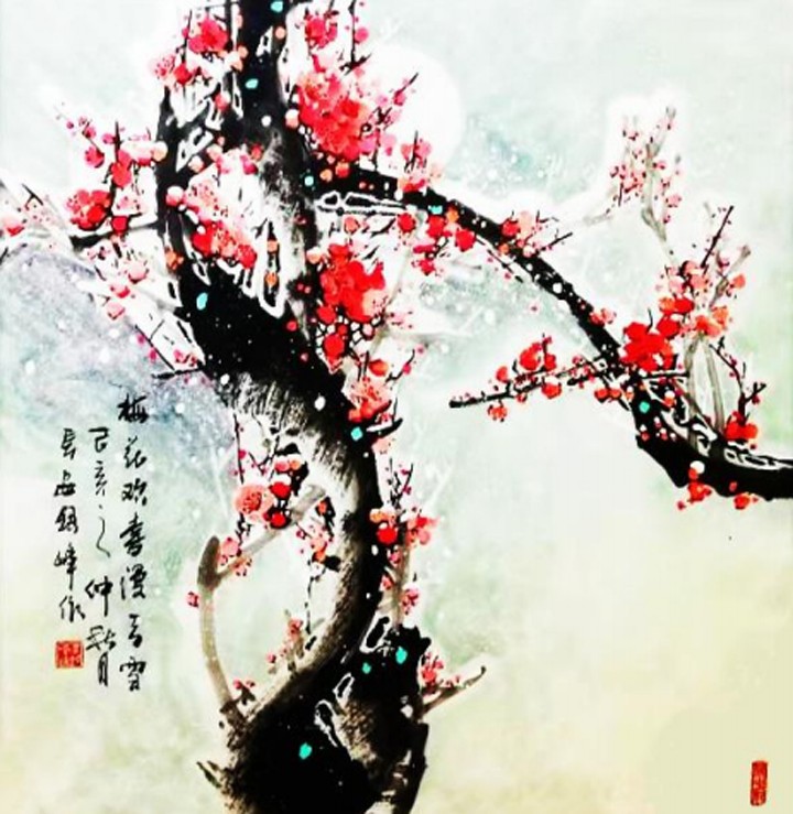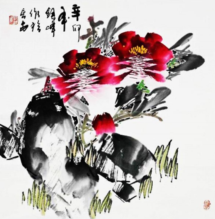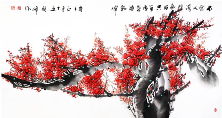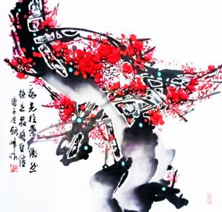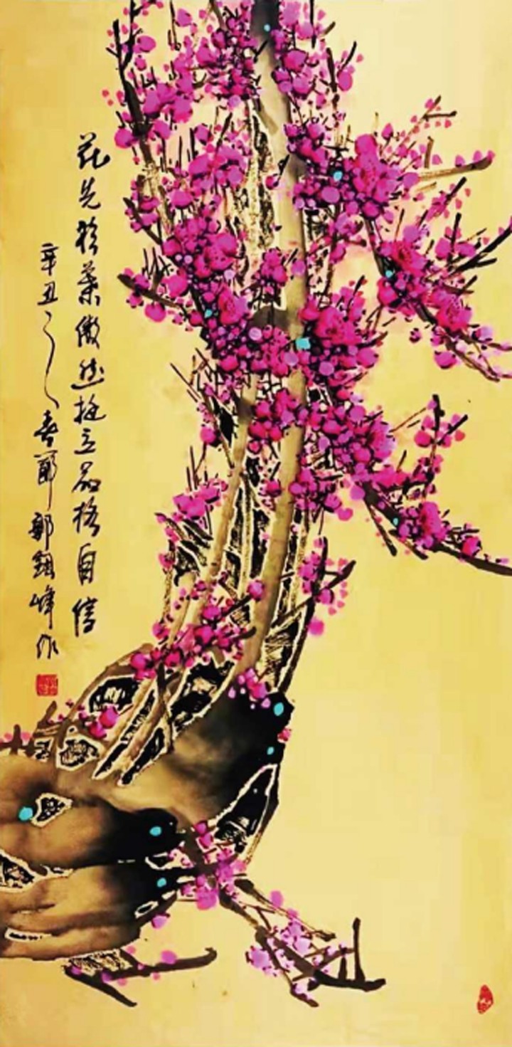 《我的同学》也是国画,它给人第一印象似乎就是写实,但所运用的手法既不同于 50 年代现实主义的写实,也不同于现代西方照相那种纯自然主义写实的逼真再现。艺术家通 过精挑细选的各种意向和元素的组合,营造出一种冷峻、严酷的气氛,着重刻画出了人物的精神内涵,表现出对人生命运的终极关怀和忧患意识。在这里,“越境者”所超越的, 已不仅仅是艺术体裁、手段和风格, 而是肉与灵、物与神、现实与历史。一切人为的壁垒、 沟壑,都被“越境者”大无畏的兼容气魄、拷问精神和反思勇气超越了!其实,艺术的大厦从外面看,各科各类,自立门户,进去一瞅,原来家家户户都是互通的。有志气的艺术家应打破传统观念中的森严壁垒,博彩百家,兼收精华,努力闯出一条属于 自己的新路,找到屠格涅夫所说的“特殊构造的喉咙”,发出华夏艺术家独有的声音。“我的画,我画的,画我的”。这就是银峰先生这位“越境者”的艺术宣言,这就是他的创作个性,这就是他对我们最宝贵馈赠与启迪。“越境”使银峰先生苦其肌肤,累其心志,但与此同时又赐予他发现的喜悦、创造的乐趣、跨越藩篱和偷尝禁果的刺激。所谓越境者,其实就是创新者,就是拓荒者,就是创造历史的人。每每望着年过花甲的银峰先生匆匆远去从不回头的背影,我总想忘情的追吼一句: “拓 荒者,功莫大焉”!在郭银峰北京人民大会堂高层书画艺术研讨会上的讲话