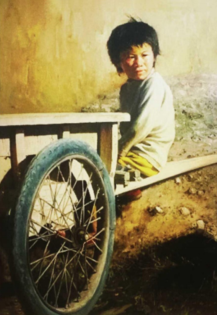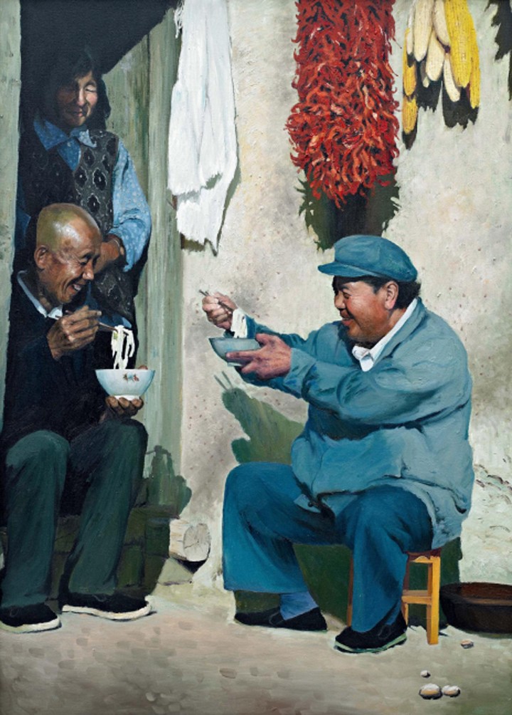 1968 年我应征入伍。他辍学回乡。几十年之后我们在家乡的小路上相遇,我是-身草绿色毛料军服,肩扛中国人民解放军上校军衔的牌子,脚穿黑色皮鞋。手提棕色皮箱,一副荣归故里的风采。而我的同学呢,一身破旧的衣着就说明了一切……,本来他的自身条件比我好,人长得很帅,大大的眼睛,高高的鼻梁。标准的脸形。虽然晒得有些黑红,却衬出一口洁白的牙齿,显得十分师气。他智力过人,口齿怜例。学习成绩一直是班上的第一名。但在那个极“左”的年代里,他不能再继续上学。我返回部队后,见到他时的情景总是在我的眼前浮现。有天晚上我又想起了我的同学张万福,浮想联翩,百感交集,一股创作的冲动顿生,仅用了一天多的时间就完成了《我的同学》这幅作品。记得路遥在写《人生》这本小说时曾为剧中人物巧珍的悲惨命运感动得留了很多眼泪,我在创作《我的同学》这幅作品时同样也产生了这种感觉。画中的张万福,虽然衣着破旧,生活显得很艰辛,但他还是面带微笑,正视现实,对未来依然充满希望。作品展出后,陕西日报记者评论道:” 任何作品都是作者人格和智慧的表白,有些表白只是个人的,有些表白既是个人的同时也是一个时代的。”他说出了我想透过这幅画。使人们更加珍惜解放思想、实事求是、政通人和的新时代创意。