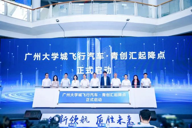 活动现场,广州大学城首个飞行汽车起降点,在广州大学城青创汇广场启用,正式拉开了广州大学城未来城市空中交通新的帷幕。