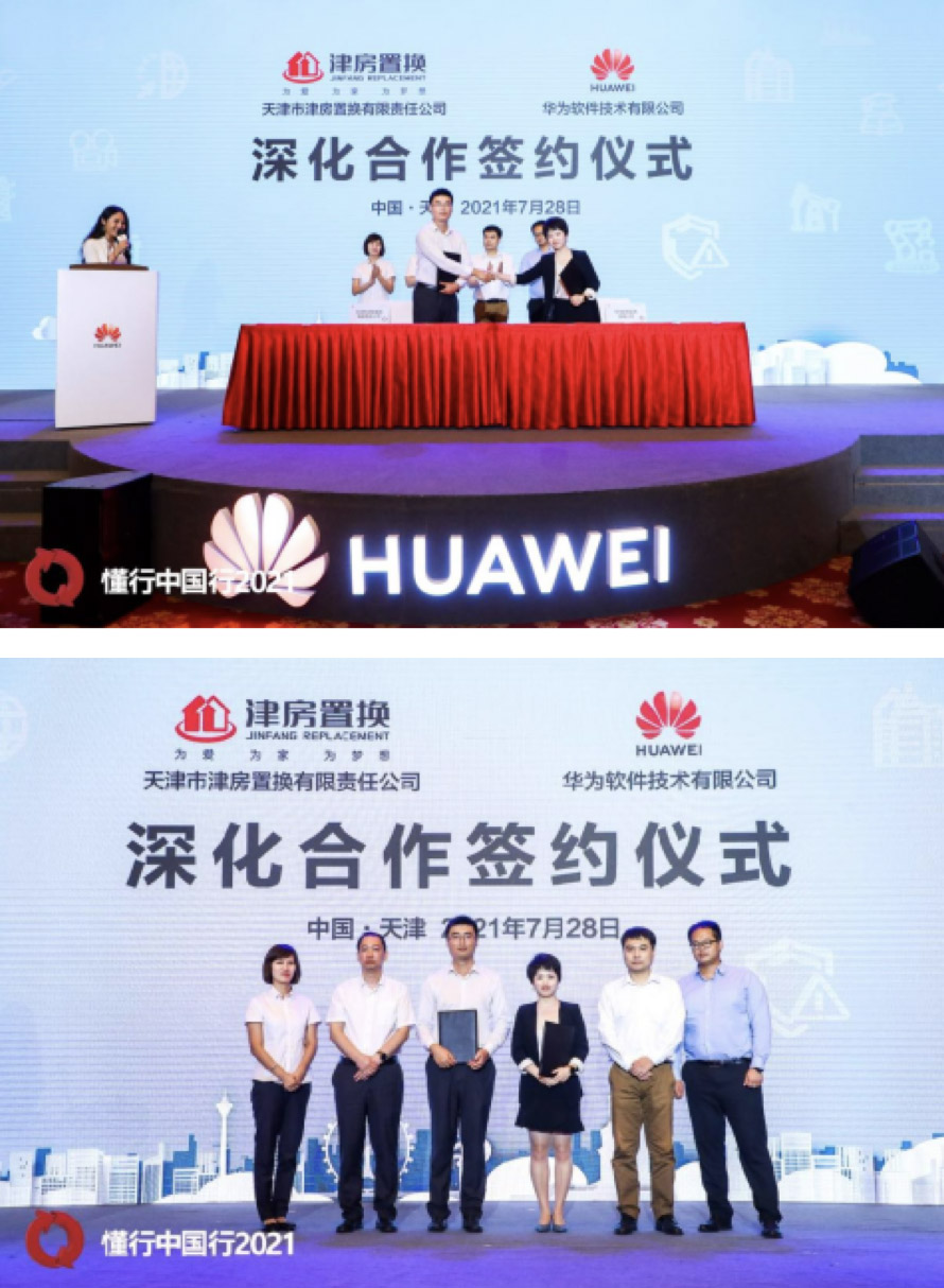 为了进一步深化合作,天津市津房置换有限责任公司与华为软件技术有限公司进行了深化合作签约仪式,由天津津房置换有限责任公司网技信息部经理赵文毅和天津华为云业务部生态经理刘菲进行签署,双方本着平等互利、合作共赢原则,将结合各自技术、资源优势,共同推动商业智能化的发展。