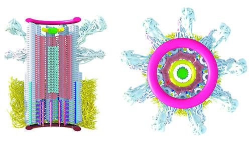 沿着纵轴切割并从上方观察的人类中心粒模型。图片来源 :CENTRIOLELAB