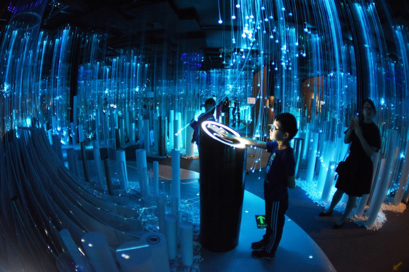 2019中国国际大数据产业博览会5月26日至29日在贵阳举行,作为今年数博会展览之一的“追梦·未来”数字艺术特展,以其独特的科技体验与艺术表现形式,吸引众多观众前来观展并体验。
