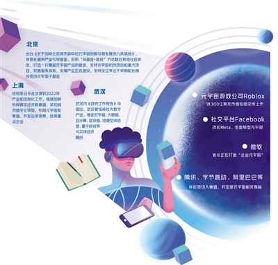 先是2021年3月,元宇宙游戏公司Roblox以300亿美元市值在纽交所上市。7月,全球社交平台Facebook改名Meta,全面转型元宇宙,“脸书改名”让元宇宙概念真正“破圈”,引发大讨论。11月,微软表示正在打造“企业元宇宙”则又将相关话题推向了高潮。除此之外,国内互联网公司腾讯、字节跳动、阿里巴巴等也纷纷斥巨资切入赛道,并于近期注册元宇宙相关商标。