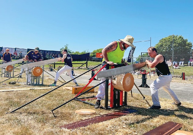 2022年11月9日,在新西兰南岛克赖斯特彻奇,人们在坎特伯雷农业展上参加锯木头大赛